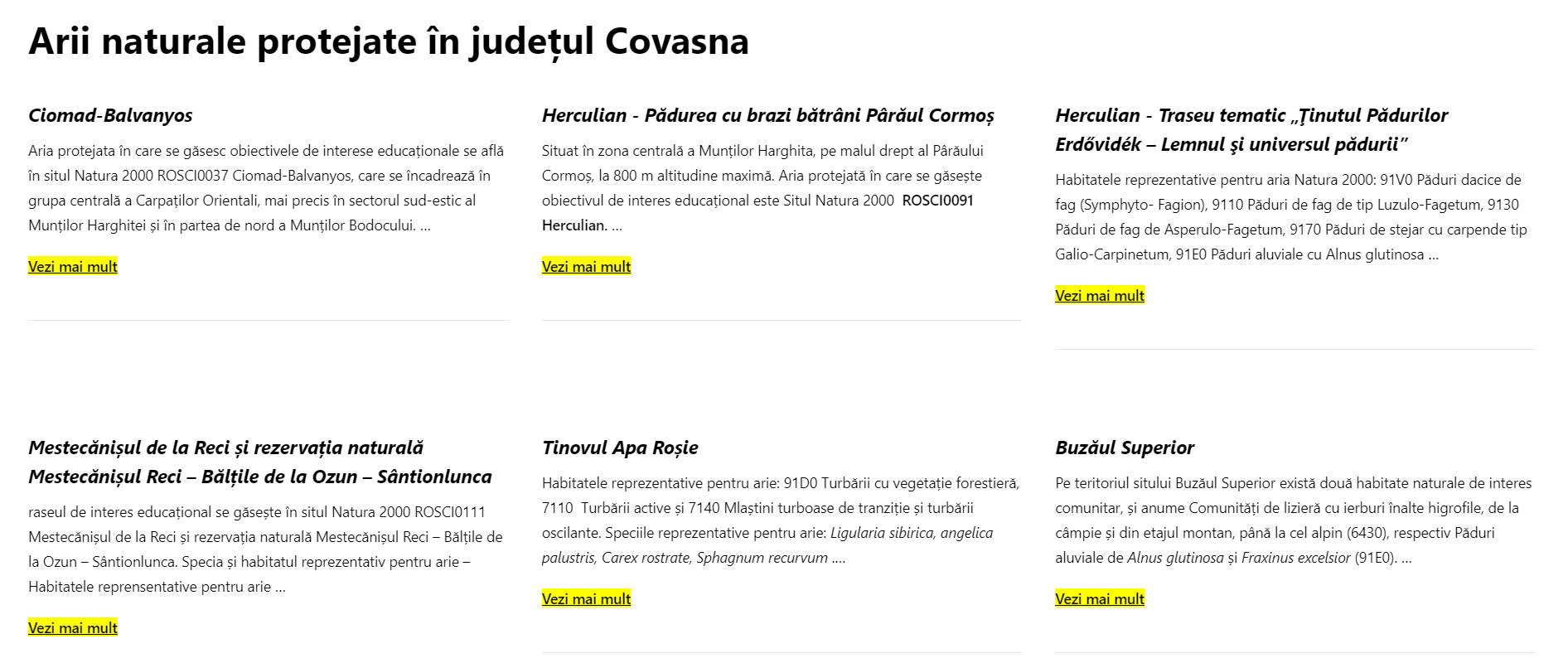 Județul Covasna – arii naturale protejate